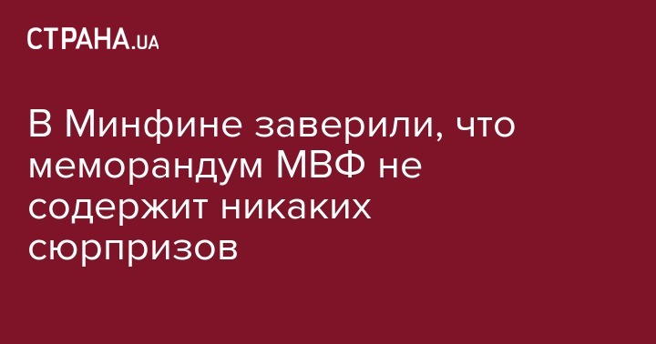 Министр финансов Александр Данилюк считает, что в меморандуме с Международным валютным фондом не содержится никаких "сюрпризов". Об этом  он написал на своей странице в социальной сети Facebook.