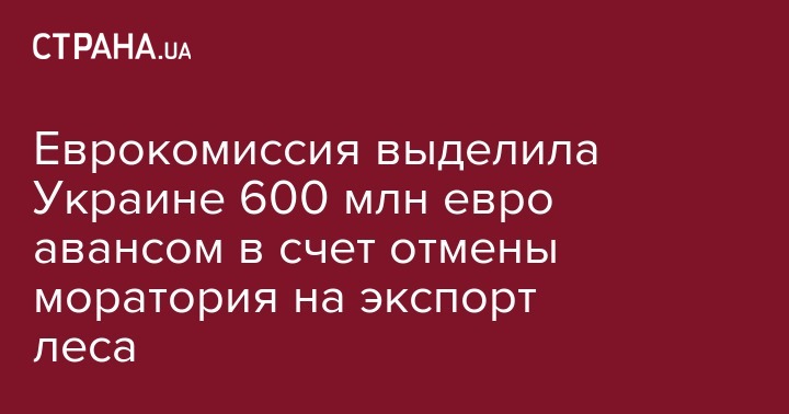 Еврокомиссия выделила Украине 600 млн евро авансом в счет отмены моратория на экспорт леса