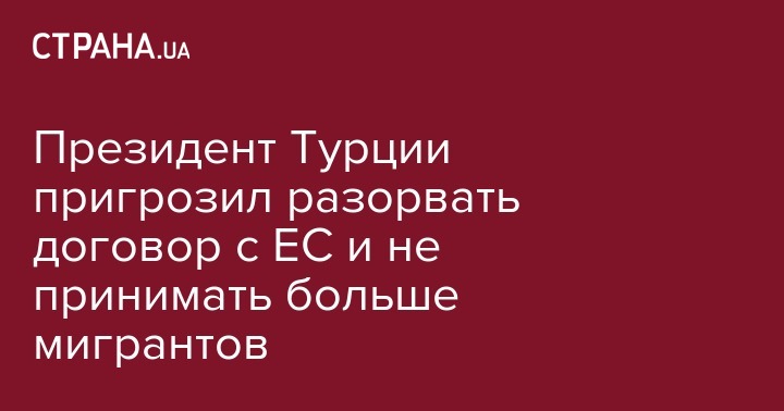 Президент Турции пригрозил разорвать договор с ЕС и не принимать больше мигрантов
