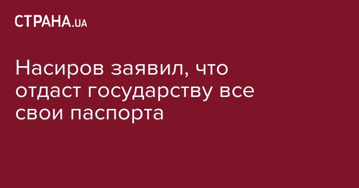 Отстраненный глава ГФС Роман Насиров заявил о готовности сдать государству внутренний и заграничные паспорта. Об этом пишет "Интерфакс-Украина".