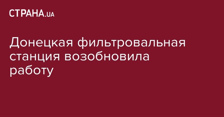 Как сообщала "Страна", украинская сторона в СЦКК получила гарантии безопасности на время ремонта Донецкой фильтровальной станции. Станцию пообещали сегодня запустить.