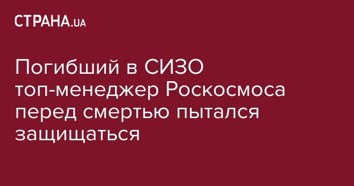 Как сообщала "Страна",  есть мнение, что исполнительного директора Роскосмоса по качеству и надежности Владимира Евдокимова могли убить в СИЗО Москвы из опаски, что он выдаст следователям информацию по делу о мошенничестве на 200 миллионов.