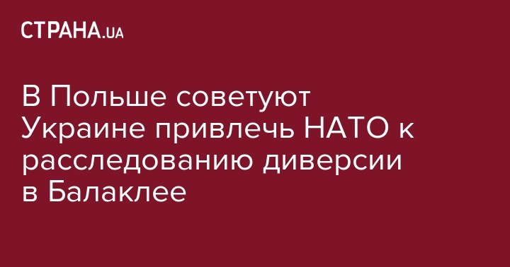В Польше советуют Украине привлечь НАТО к расследованию диверсии в Балаклее