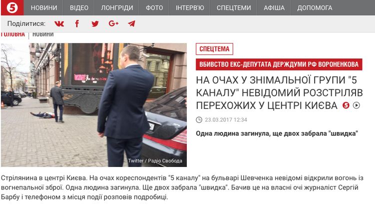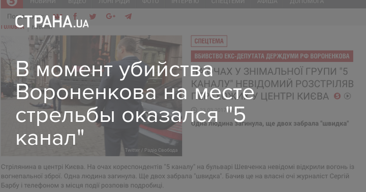 Съемочная группа "5 канала", принадлежащего президенту Петру Порошенко, оказалась на месте убийства экс-депутата Госдумы РФ Дениса Вороненкова аккурат во время стрельбы.