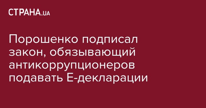 Порошенко подписал закон, обязывающий антикоррупционеров подавать Е-декларации