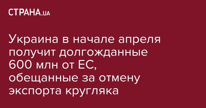 Украина в начале апреля получит долгожданные 600 млн от ЕС, обещанные за отмену экспорта кругляка
