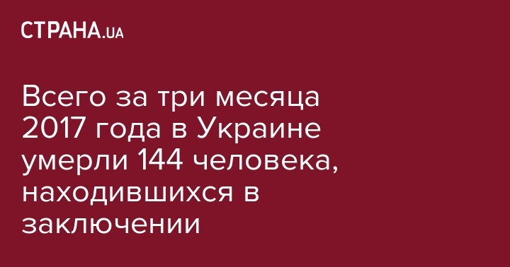 В Украине с начала года умерли 144 заключенных и осужденных. Об этом заявил генеральный прокурор Юрий Луценко во время совещания по вопросам реформирования деятельности медицинских служб учреждений Государственной уголовно-исполнительной службы Украины (ГУИС), сообщила его пресс-секретарь Лариса Сарган на своей странице в Facebook.