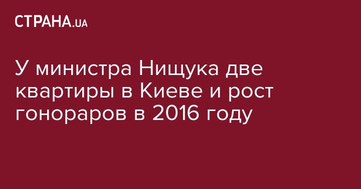 У министра Нищука две квартиры в Киеве и рост гонораров в 2016 году