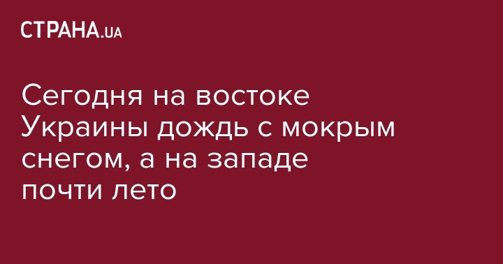 Сегодня на востоке Украины дождь с мокрым снегом, а на западе почти лето
