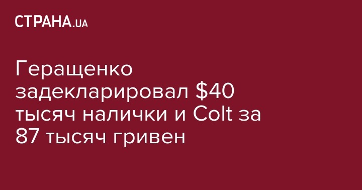 Геращенко задекларировал $40 тысяч налички и Colt за 87 тысяч гривен