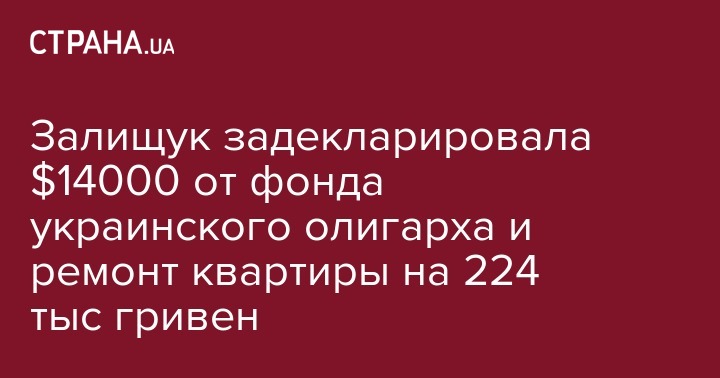 Напомним, в ноябре Залищук задекларировала ремонт в 220 тыс. грн и 9500$ наличными.