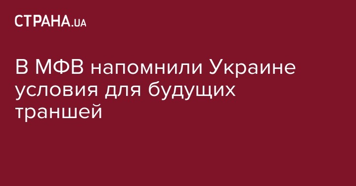 В МФВ напомнили Украине условия для будущих траншей