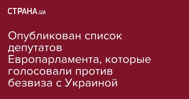 Опубликован список депутатов Европарламента, которые голосовали против безвиза с Украиной
