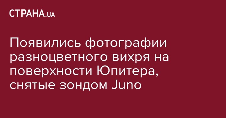 Космическая станция Juno (Jupiter Polar Orbiter) сделала снимок гигантского вихря на Юпитере. Фотография доступна на сайте NASA.