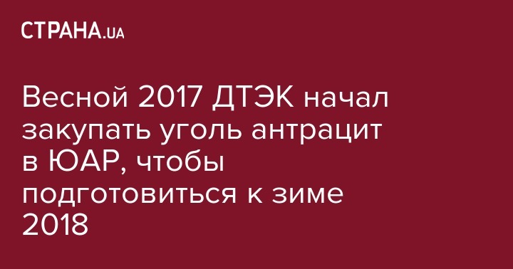 Весной 2017 ДТЭК начал закупать уголь антрацит в ЮАР, чтобы подготовиться к зиме 2018