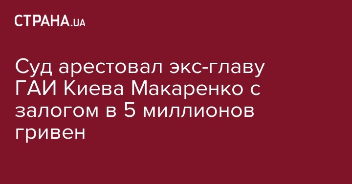 Печерский районный суд Киева избрал меру пресечения для бывшего руководителя УГАИ ГУ МВД Украины в Киеве Николая Макаренко, который недавно был экстрадирован из России, в виде содержания под стражей с возможностью внесения залога в сумме 5 млн грн.