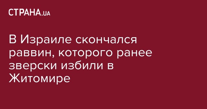 В Израиле скончался Мендл Дайч, израильский раввин, зверски избитый в октябре прошлого года в Житомире, сообщает "Лехаим". 7 октября в Житомире Дайч был найден без сознания с ножевыми ранениями у железнодорожного вокзала.