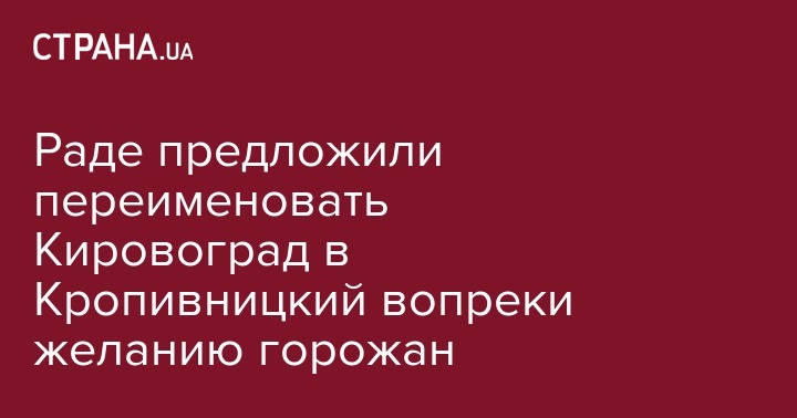 Раде предложили переименовать Кировоград в Кропивницкий вопреки желанию горожан