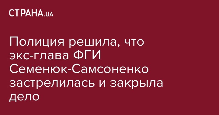 Полиция закрыла дело о смерти бывшего руководителя Фонда госимущества Валентины Семенюк-Самсоненко из-за отсутствия состава преступления. Об этом сообщают "Украинские новости".