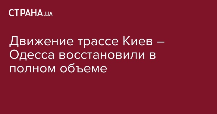 Движение по трассе Киев – Одесса в Одесской области полностью восстановлено в пятницу, сообщил начальник Службы автомобильных дорог в области Олег Варивода на своей странице в Facebook.
