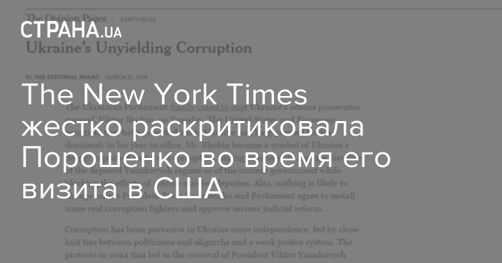 Во время визита президента Украины Петра Порошенко в США одна из ведущих американских газет The New York Times резко раскритиковала его внутреннюю политику в своей редакционной статье.