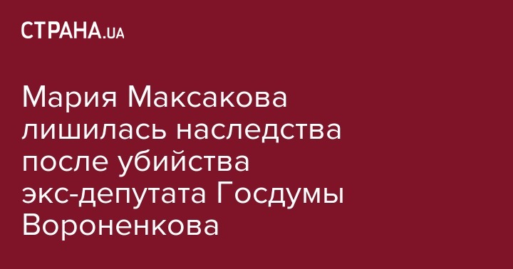 Мария Максакова лишилась наследства после убийства экс-депутата Госдумы Вороненкова