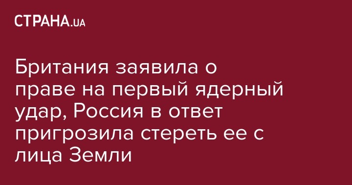 Британия заявила о праве на первый ядерный удар, Россия в ответ пригрозила стереть ее с лица Земли