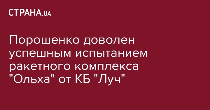 "Поздравляю конструкторское бюро "Луч" с успешным этапом испытаний ракетного комплекса "Ольха"! Особенно приятно, что все составляющие для производства "Ольхи" – украинские", - написал Порошенко.