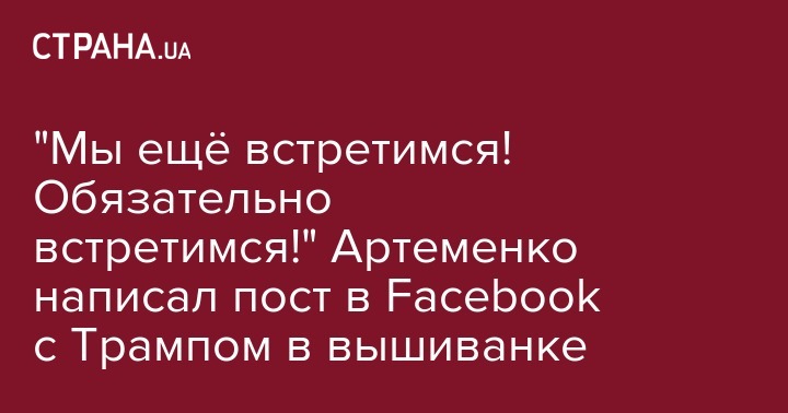 "Мы ещё встретимся! Обязательно встретимся!" Артеменко написал пост в Facebook с Трампом в вышиванке