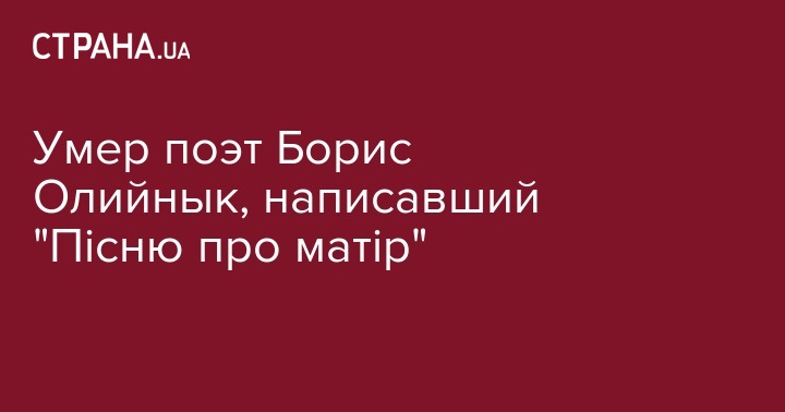 Умер поэт Борис Олийнык, написавший "Пiсню про матiр"