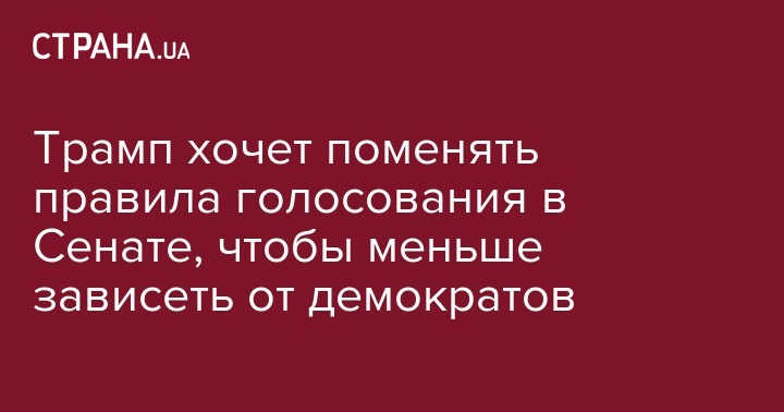 Президент США от Республиканской партии Дональд Трамп хочет изменить правила голосования в Сенате, чтобы не зависеть от членов Демократической партии и принимать нужные решения голосам только республиканцев. Об этом президент США сообщил в Twitter.