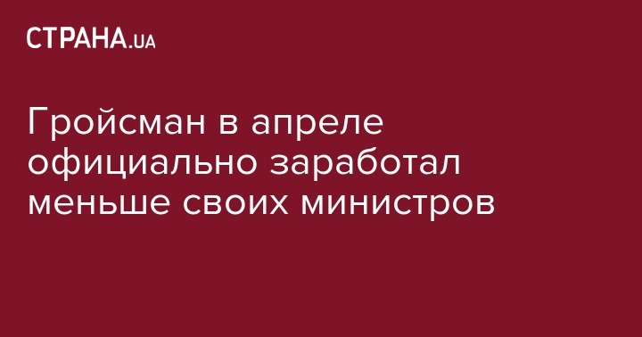 Премьер-министр Владимир Гройсман получил официальной зарплаты за апрель 35 841,35 гривен, что даже меньше, чем у его подчиненных, министров. Об этом говорится в ответе секретариата Кабмина на запрос "Украинских новостей".
