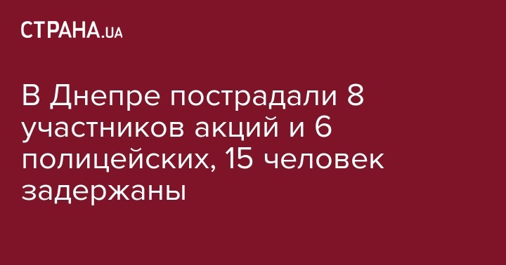 В Днепре в результате столкновений задержаны 15 человек, пострадали 8 участников акций и 6 полицейских. Об этом сообщает пресс-служба ГУ Нацполиции в Днепропетровской области.