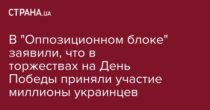 После празднования 9 мая Дня Победы партия "Оппозиционный блок" заявила о том, что в торжествах приняли участие миллионы украинцев. Об этом говорится в заявлении партии.