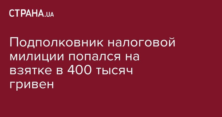 Подполковник налоговой милиции попался на взятке в 400 тысяч гривен