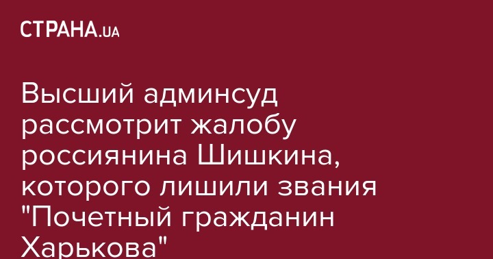 Высший админсуд рассмотрит жалобу россиянина Шишкина, которого лишили звания "Почетный гражданин Харькова"