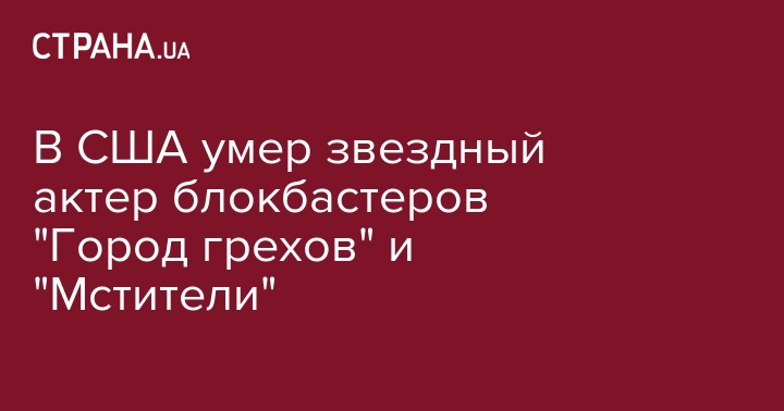 В США умер звездный актер блокбастеров "Город грехов" и "Мстители"