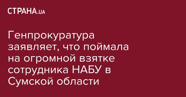 Генпрокуратура заявляет, что поймала на огромной взятке сотрудника НАБУ в Сумской области