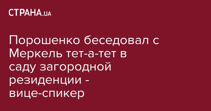 "Около часа длился личный разговор канцлера и президента, вид способствовал откровенному обмену мнениями. Канцлер и президент прошлись по парку, затем общались на свежем воздухе, вблизи озера", - написала Геращенко. По ее словам, во время встречи в расширенном кругу ключевой темой были политика безопасности и гуманитарная ситуация на Донбассе.