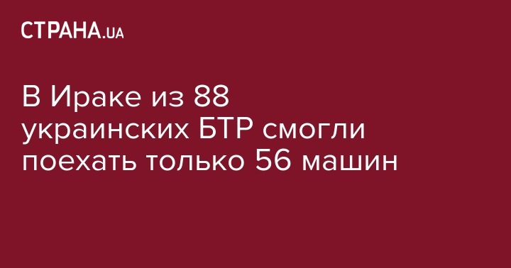 Иракские военные, получившие партию из 88 украинских бронетранспортеров БТР-4, смогли завести только 56 машин, но и из них тронулись с места лишь 34. Об этом говорится в письме компании-поставщика "Укрспецэкспорт", копию которого публикует "Зеркало недели".