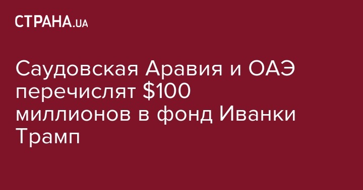 Саудовская Аравия и ОАЭ выделят $100 млн фонду Иванки Трамп. Об этом сообщает The Washington Post.