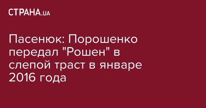 Договор о передачи доли президента Украины Петра Порошенко в blind trust (доверительную собственность) был подписан 14 января 2016 года, одной из его сторон выступила компания Петра Порошенко Prime Asset Partners Limited (BVI) (Британские Виргинские о-ва), сообщил финансовый советник Петра Порошенко, управляющий директор инвесткомпании ICU Макар Пасенюк журналистам в Киеве в понедельник.