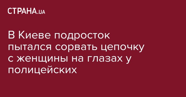 В Киеве подросток пытался сорвать с шеи женщины золотую цепочку. При этом он не заметил участковых офицеров полиции. Увидев полицейских он пытался сбежать, но был задержан. Об этом сообщает пресс-служба Нацполиции в Киеве.