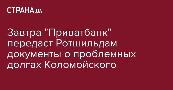 Завтра "Приватбанк" передаст Ротшильдам документы о проблемных долгах Коломойского