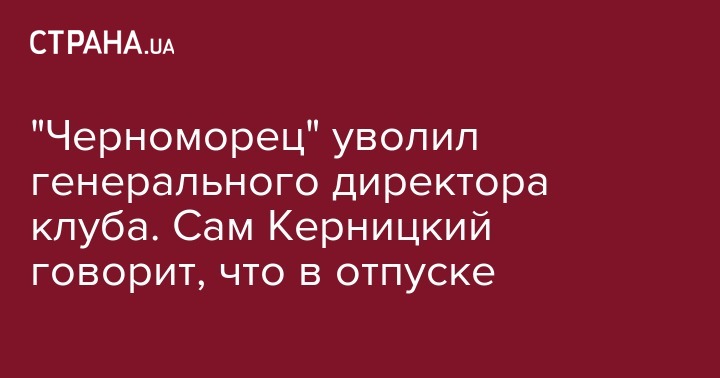 "В данный момент я не покинул пост генерального директора нахожусь в календарном отпуске. Все вопросы адресуйте руководству "Черноморца". За 10 лет моей работы я ни раз не ходил в отпуск, поэтому имею на это полное право. По законодательству, которое существует, кто-то должен выполнять обязанности (директора - Прим.Ред.). Сейчас и.о. генерального директора товарищ Якимов", – сказал Керницкий.
