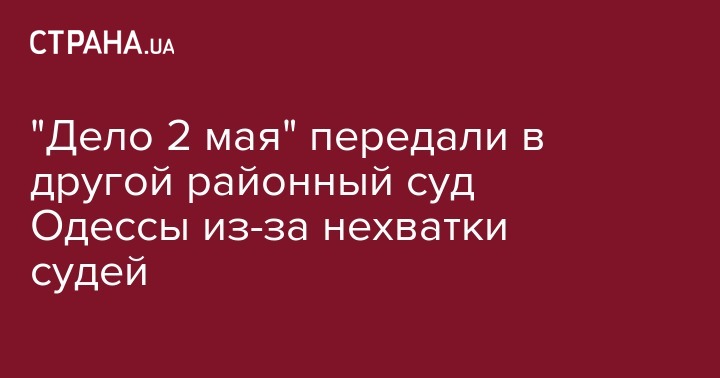 Как сообщалось, 24 мая председатель Киевского райсуда Одессы известил руководство Апелляционного суда Одесской области, что не может сформировать коллегию судей для разбирательства "дела 2 мая" из-за отсутствия достаточного количества судей уголовной коллегии, которые имеют право осуществлять такие производства.