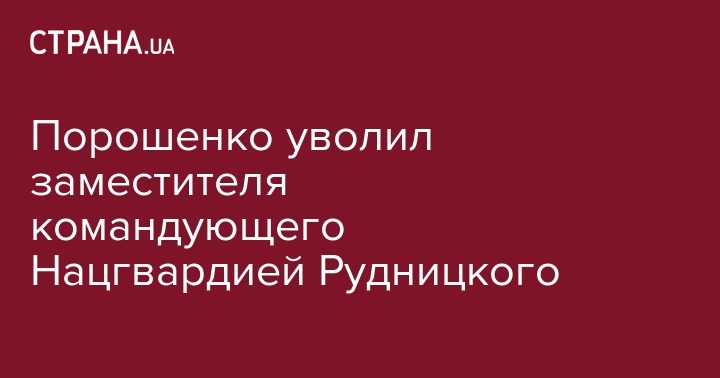 "Уволить Рудницкого Валерия Ивановича с должности заместителя командующего Национальной гвардией Украины и зачислить его в распоряжение командующего Национальной гвардией Украины", - говорится в указе президента.