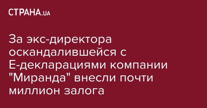 За экс-директора оскандалившейся с Е-декларациями компании "Миранда" внесли почти миллион залога