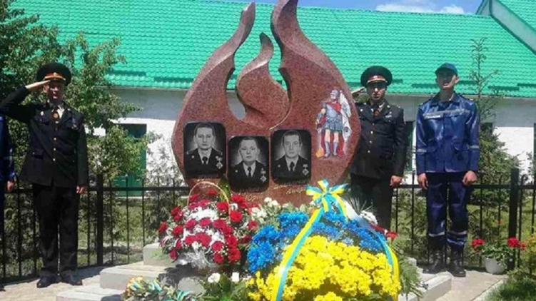 Памятный знак открыт в память о пожарных-спасателях, погибшим 30 мая 2016 года на территории Грибовичской свалки.