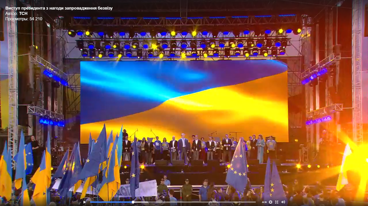 Сегодня, 10 июня, президент Украины Петр Порошенко открыл концерт в честь безвиза с ЕС, который проходит на Европейской площади в центре Киева. К собравшемуся на праздник народу он обратился словами Лермонтова.